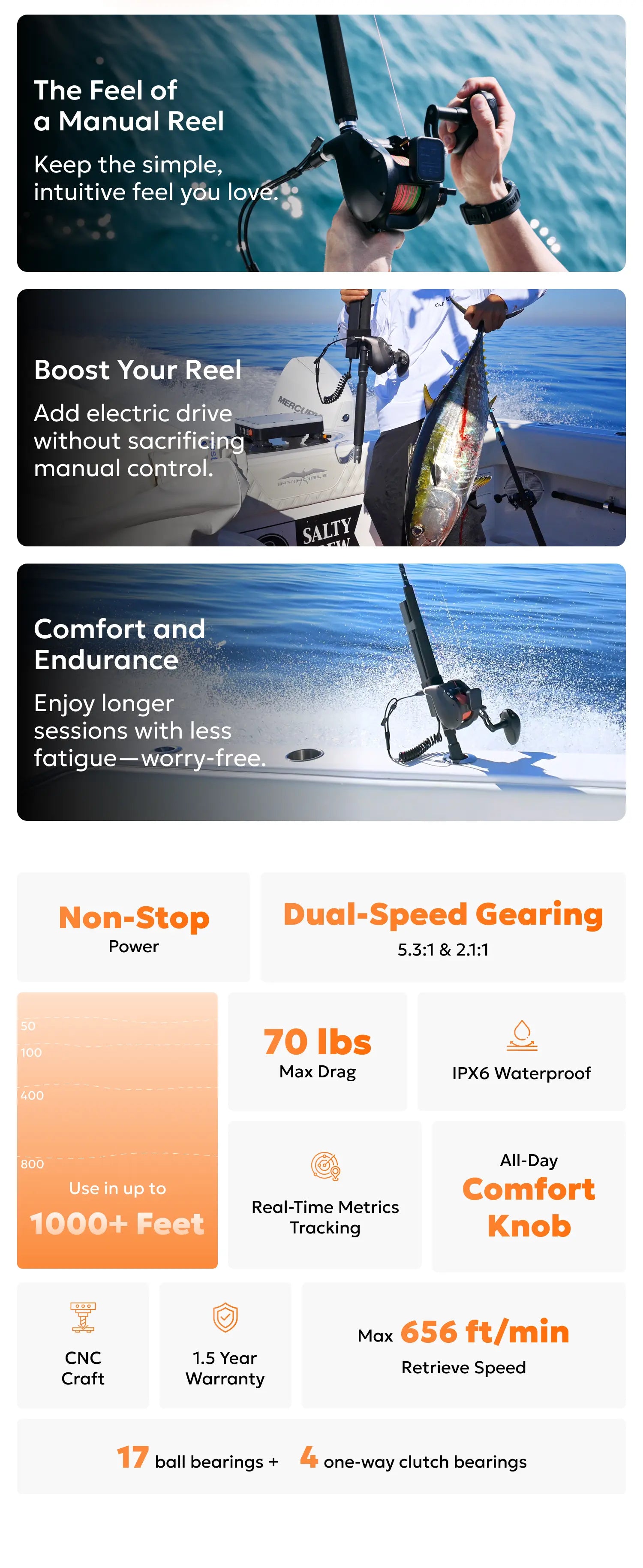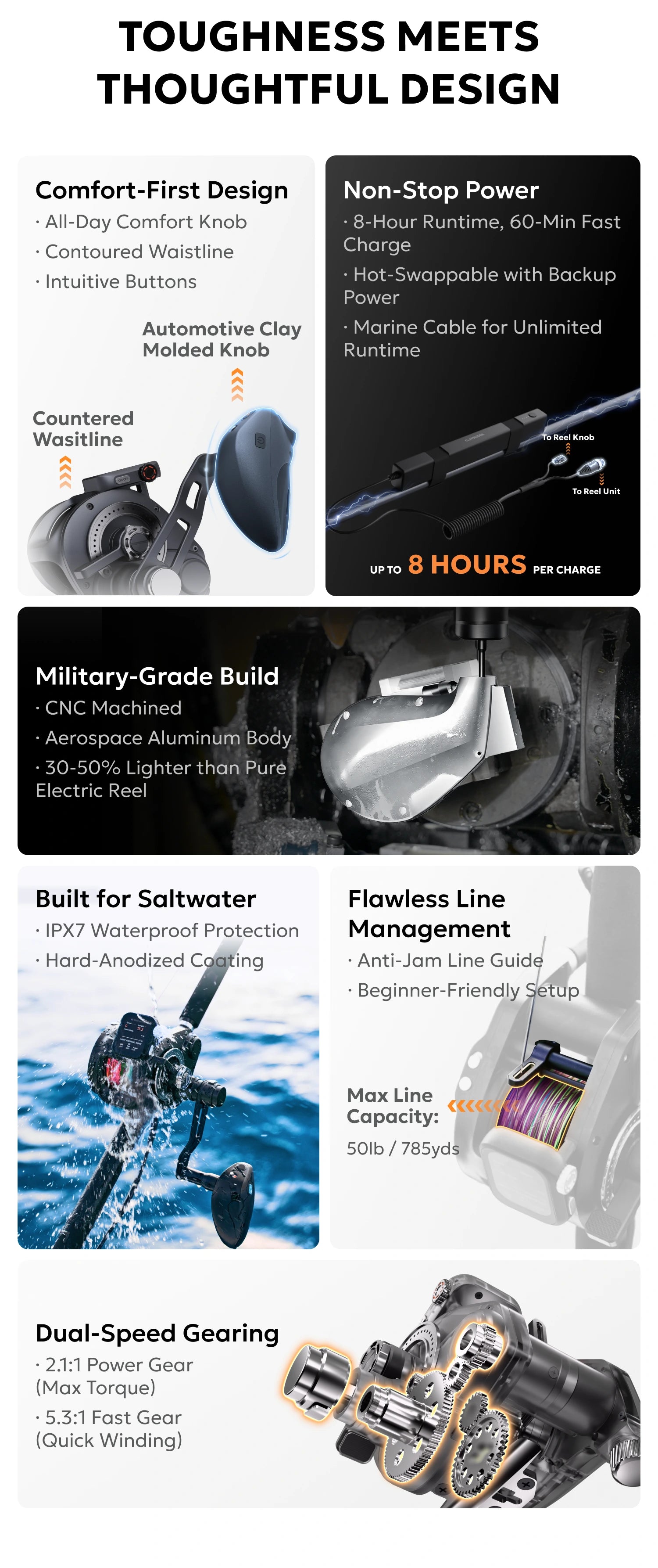 Achieve effortless setup before you leave the dock. Use your phone to set all reel parameters—add bait profiles, enable modes, set drag limits. Save custom profiles for different techniques and conditions.